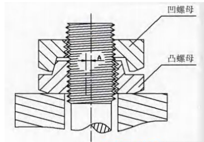 HARDLOCK是雙螺母(見圖3),內(nèi)螺母外側(cè)設(shè)有偏心的突起;外螺母為普通螺母結(jié)構(gòu),其內(nèi)側(cè)設(shè)有同心的凹槽;外螺母?jìng)渚o時(shí)內(nèi)螺母的外側(cè)凸起與螺栓不同心,內(nèi)螺母的偏心突起與螺栓受到外螺母的擰緊擠壓產(chǎn)生徑向力,相當(dāng)于在螺紋間隙中增加了鍥子,螺紋全方位鎖緊。